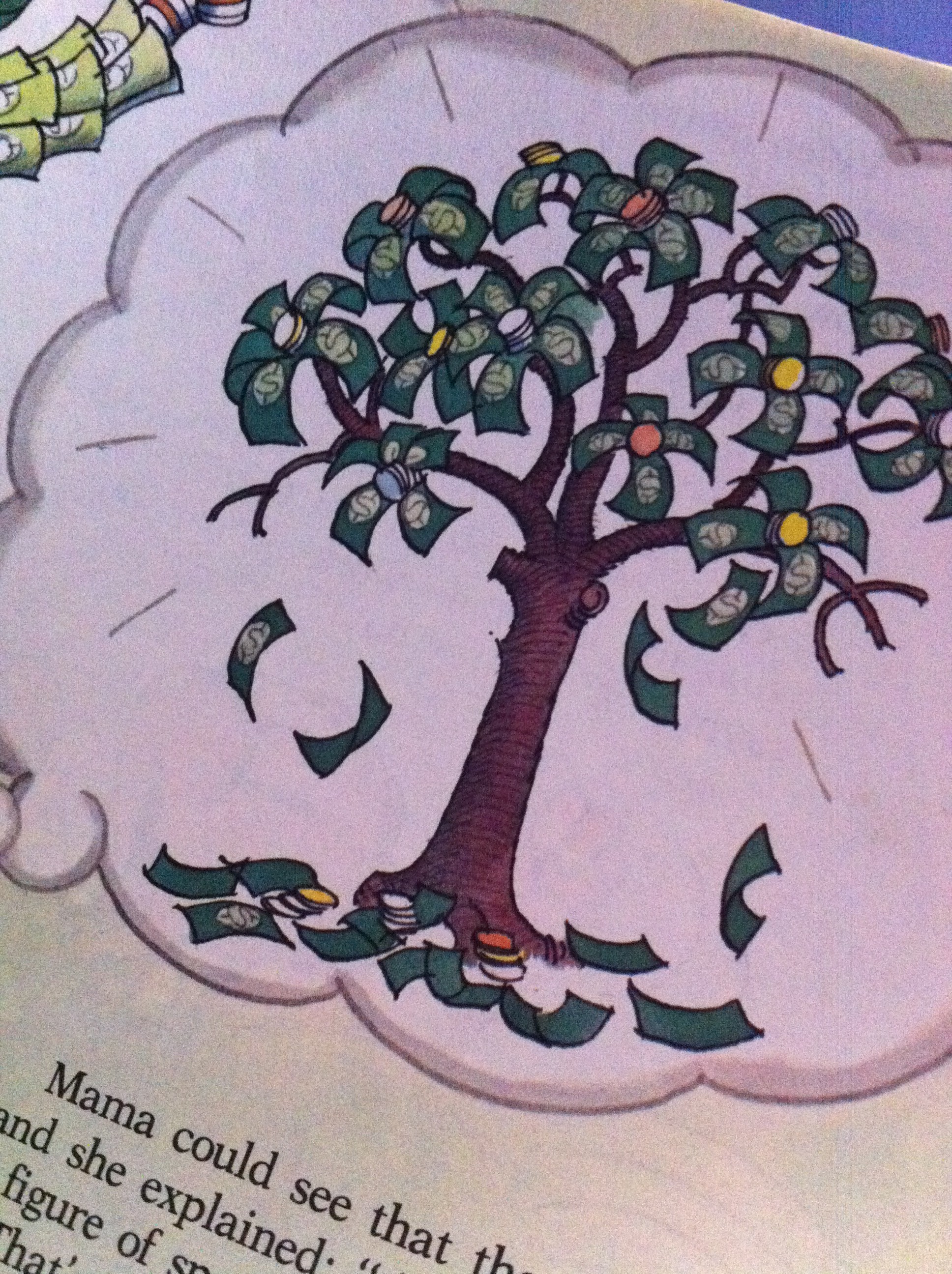In this children’s book Papa and Mama bear notice that their cubs didn’t make good choices when it came to the money that they had and how they used it. They spent it on frivolous items at the mall. Fleeting joys. They teach about saving for a rainy day – but that isn’t exactly what the Bible teaches us. The cubs don’t keep the money for themselves, they instead give it to Papa Bear so he won’t have to worry. Generosity is a loving characteristic.
