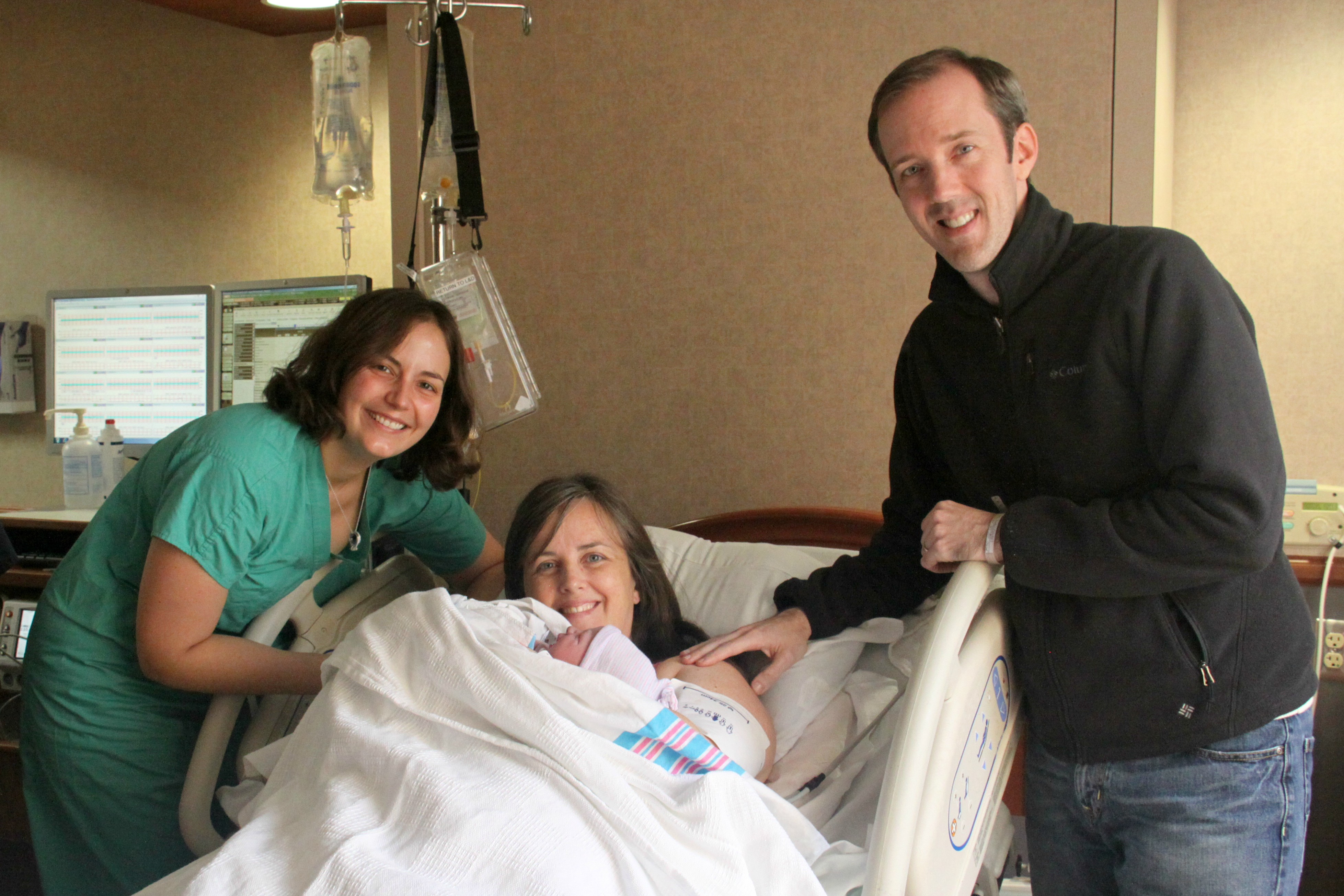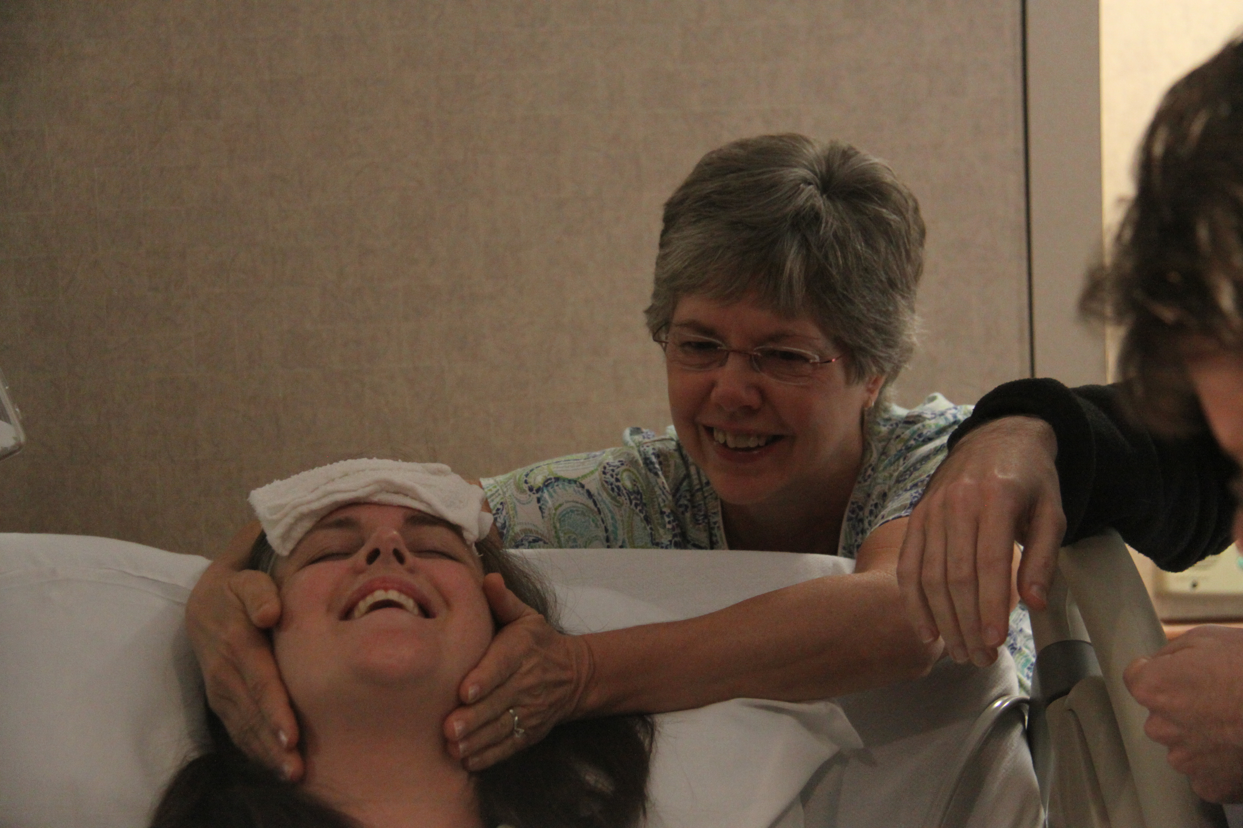 I had two sweet women holding my hair, holding my baby (afterwards), and taking care of my husband with food and company.