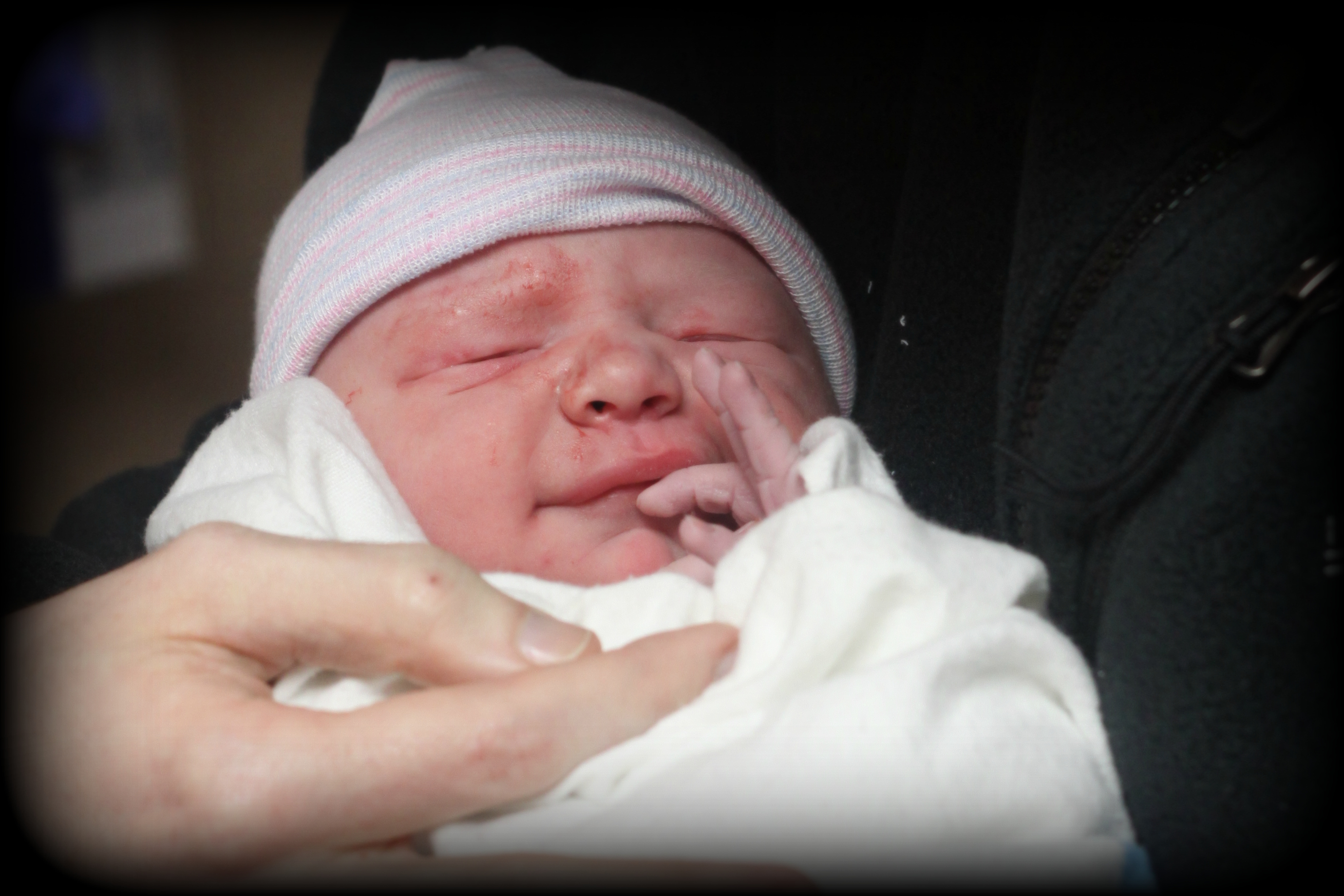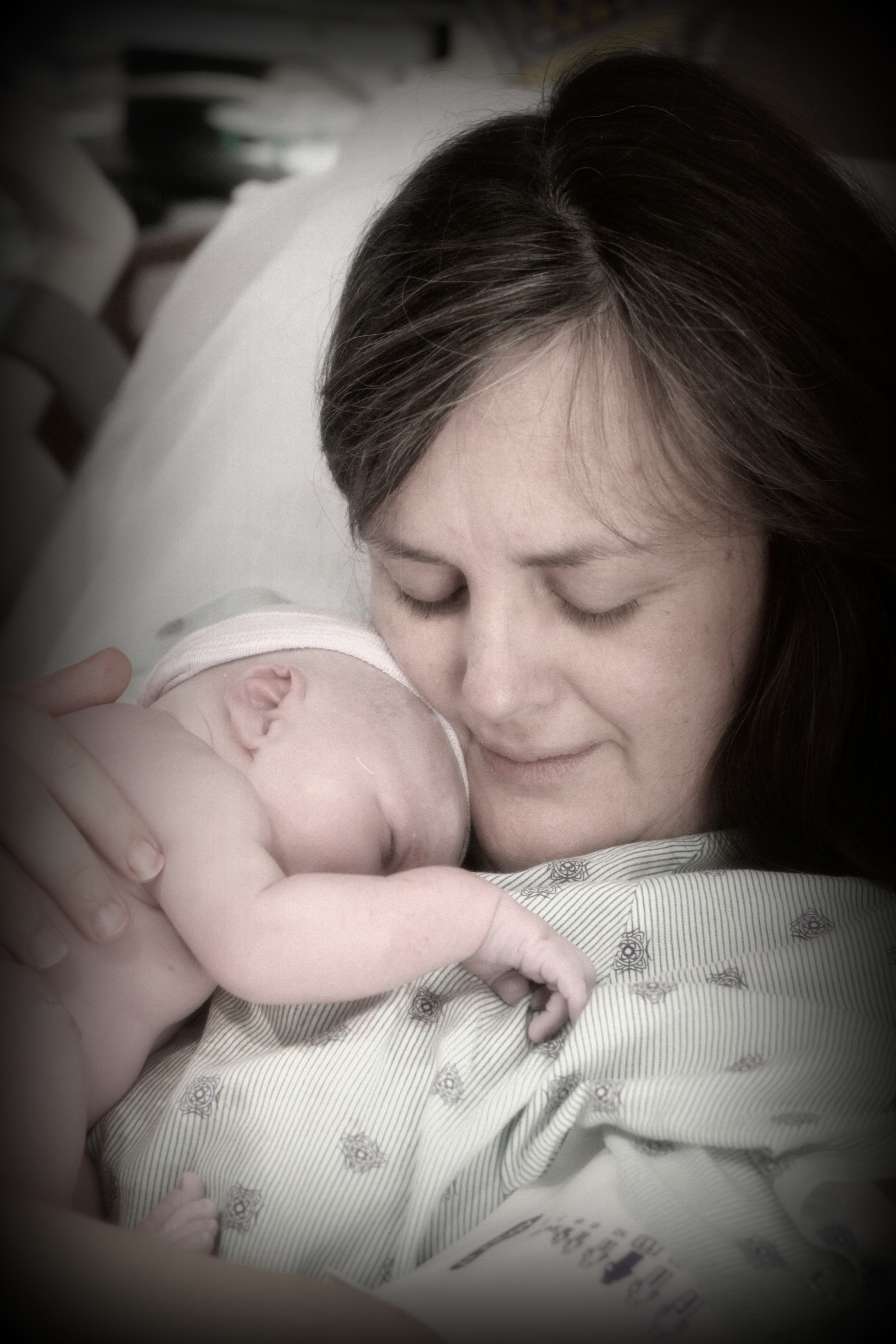 Started with stadol (sp?) as my pain killer. Nothing really was happening. By then I was only at 5cm and it was about 5am. So we decided to get the epidural. That’s when we found out my water sac was still pretty much intact – it had just been leaking, sorta. So, when the epidural kicked in my water broke, I went to 9 cm in no time, and with 6 sets of pushes Sebastian was in my arms. 830am.