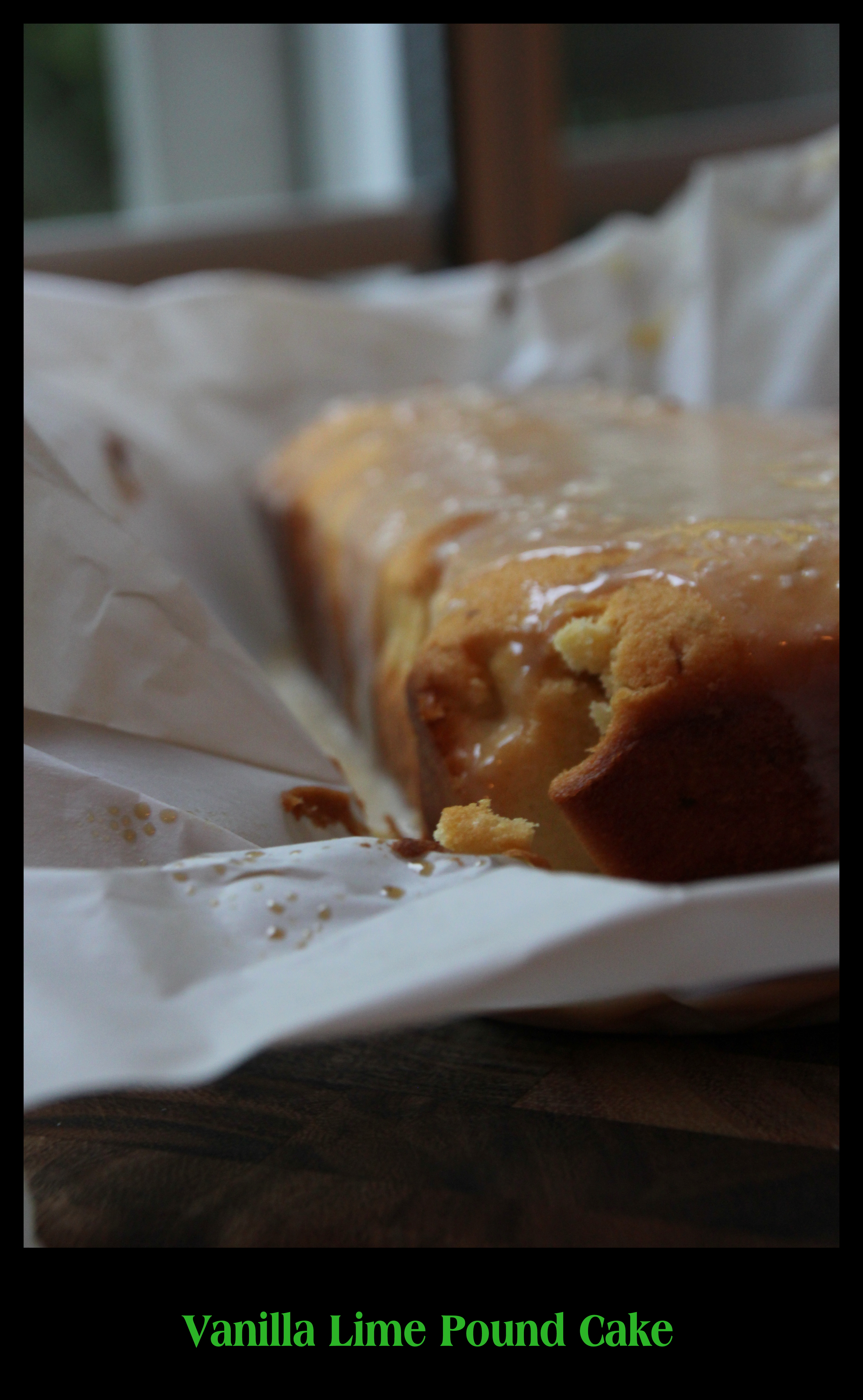 But, this pound cake features two of those flavors…lime and vanilla. I made it today for our family reunion and my Dad’s comment “Its dense and moist.” Exactly what a pound cake should be.