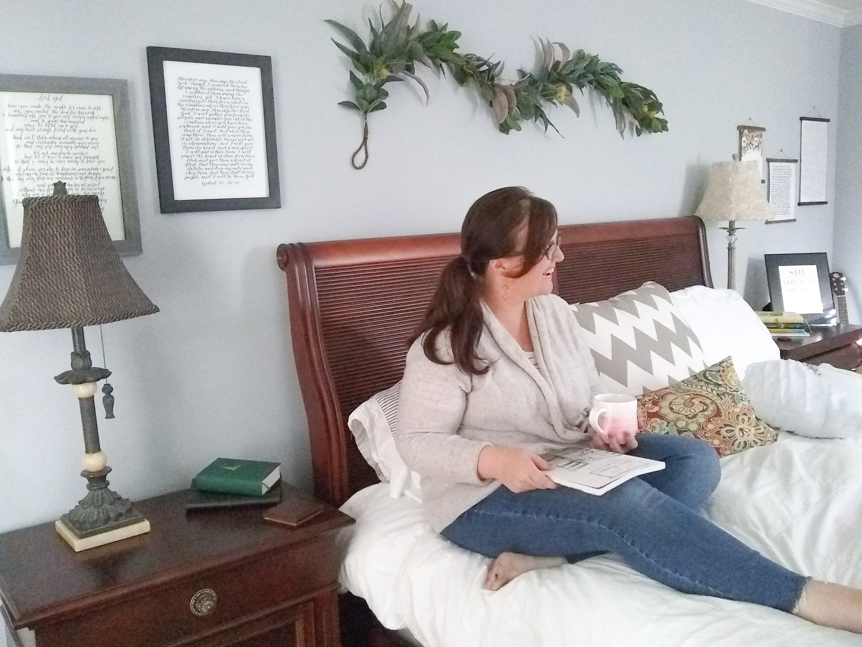 But, he has always been generous to me in our marriage to make our home really what I would love it to be.  So, we’ve done that over the years.  We still have the same furniture, but my husband may not have picked the Hearth and Home garland that is now over our bed.