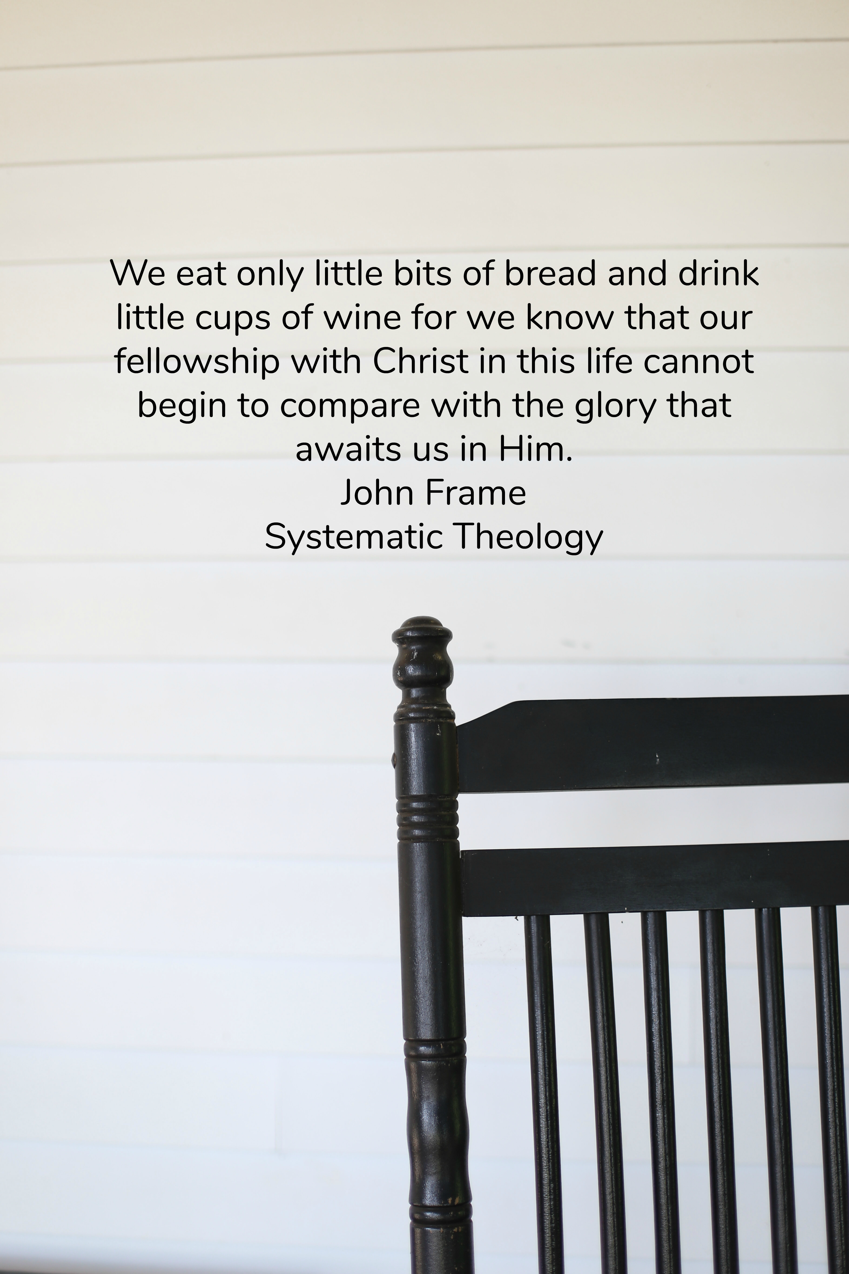 And this table, the Lord’s table, reminds me most of a time when I can sit at the table with Him in Heaven, my feet covered with brilliant fine linens, no one seeing my faithlessness, my rebellion, but all seeing the love and beauty of Christ.