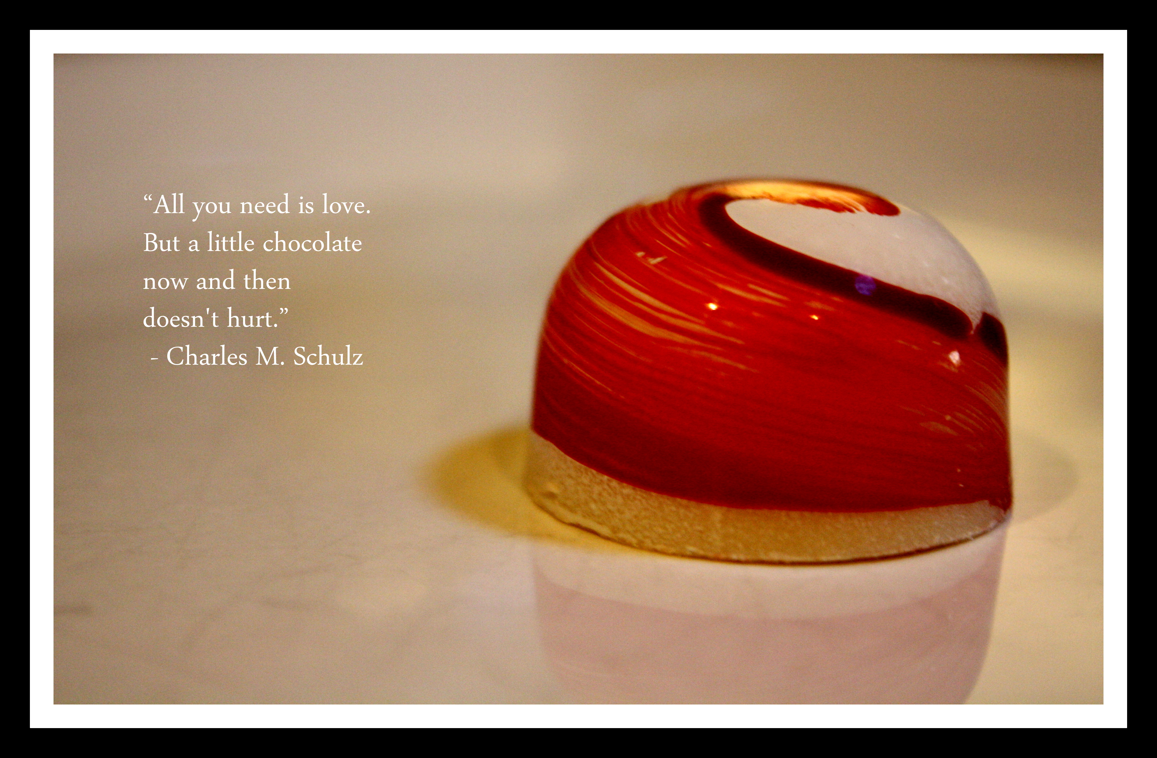 I am a lover of Peanuts – the comic strip. Who wouldn’t love Charlie Brown and Woodstock and a beagle who is always bossing people around! I enjoyed the Christmas tribute to Schulz in Louisville when I lived there. He is so right about chocolate.